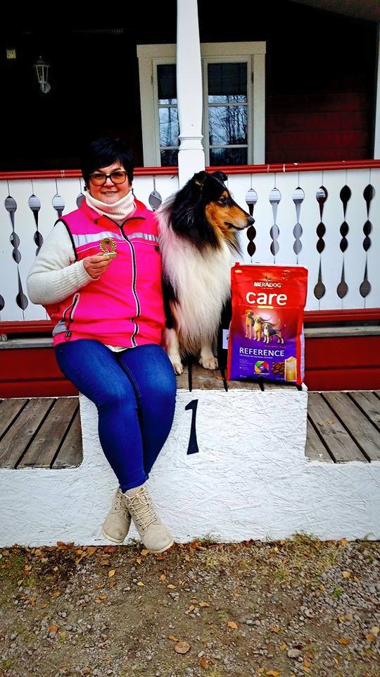 Har ju inte tävlat Lydnad på flera år, så jag hade helt glömt bort hur det skulle gå till. Jätteskönt att ha Maria där som har tävlat förut, och kunde berätta vad som skulle ske. Fick gå in och dra lott om vilket startnummer vi skulle ha. Det blev nummer åtta och sista tävlande. Fast först var det ju Platsliggning. Kändes ganska nervöst då hunden bredvid Eros var en schäferhane som gick och tittade bakåt på Eros och också tävlade för första gången. Man vet ju aldrig hur det ska gå, men de skötte sig hur bra som helst under platsliggningen och Eros fick full pott med 10 poäng! Även på tandvisningen direkt efter fick han 10 poäng på! Wow, jag blev så glad så då tänkte jag att nu får det gå hur som helst, för nu har vi iallafall klarat av de första momenten. Blev en nervös väntan men samtidigt roligt att titta på alla duktiga tävlande. Sen var det då vår tur. På Linförigheten fick vi 8,5 poäng. Läggande under gång fick vi 7,5 p på. Inkallande 8,5 p. Ställande under gång skrapade vi ihop 7 poäng på. Apportering nollade vi tyvärr, då han släppte den i marken för tidigt. Men Hoppet fick vi 9,5 poäng på! Och Helhetsintrycket fick vi 8 poäng på. Fast det visste jag ju inte först. Det skulle bli prisutdelning och de började bakifrån. Stod bara där och väntade på att de skulle ropa upp oss, men det blev andra som de ropade upp. Började tro att de missat oss. Men vi hade trevligt sällskap av trevligt hundfolk och de sa att vi kanske till och med skulle hamna på pallen. Fast det fanns då inte i tanken för mej. Döm om min förvåning då de ropade upp Eros & mej som vinnare i Lydnadsklass 1 med ett 1:a pris och 164 poäng!!! Herregud, vi som inte ens hade tänkt åka dit... Ja, jag har nog nästan aldrig blivit så förvånad och dessutom väldigt glad! Vilken otrolig dag, och vilken otrolig hund jag/vi har i Eros. Han är helt enkelt Fantastisk!